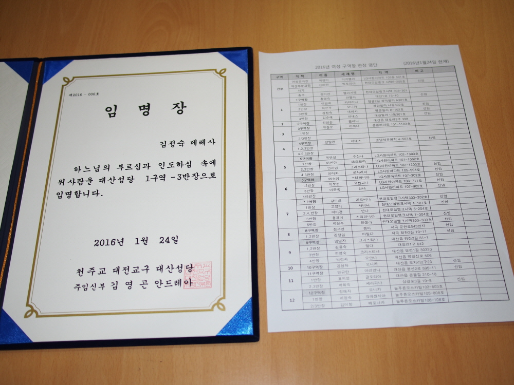 2016년 신임 여성구역장 반장 임명장 수여식(1월 24일)