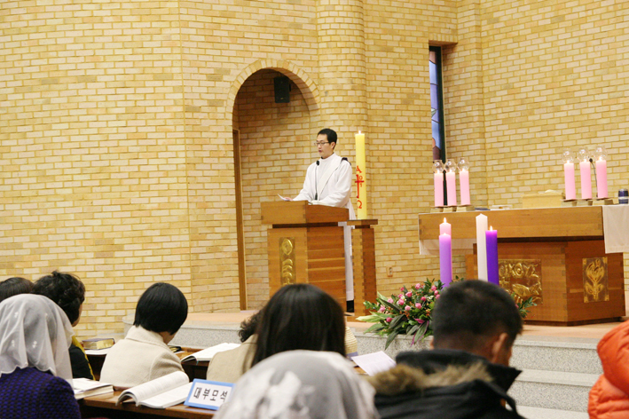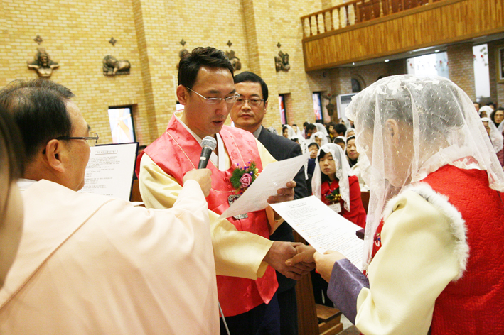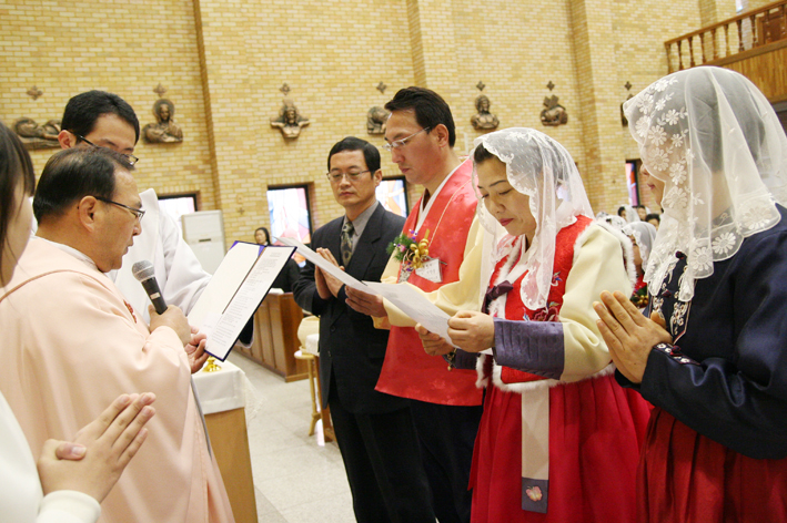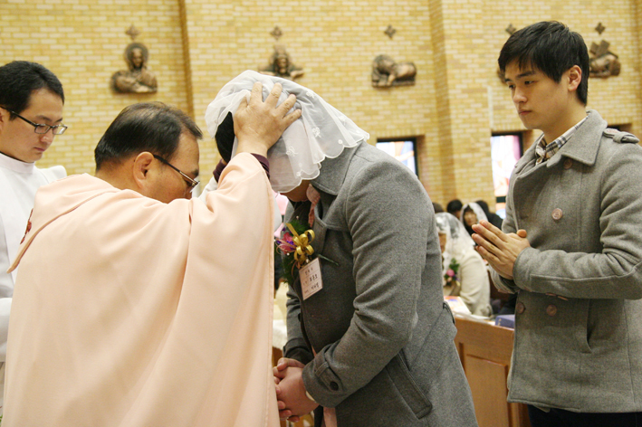 2011.12.11 교중미사중(세례식과 박찬중프란치스코형제님,전경희리디아자매님의 혼배미사)가 진행되었습니다.